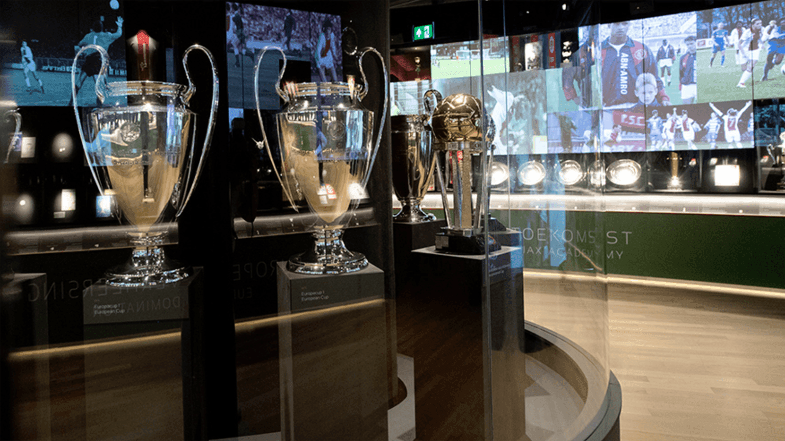 NorthernLight designed and developed the Ajax Gallery of Fame. In the Gallery all important Trophies are on display, as well as a rich selection of Ajax artefacts and shirts. Through videos, photos and audio, the glorious history is told. The Ajax Gallery of Fame will function as the beautiful epilogue to the Amsterdam ArenA stadium tour, but will also be a location for receptions and VIP events.