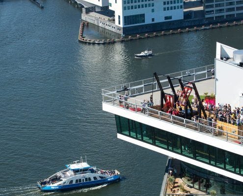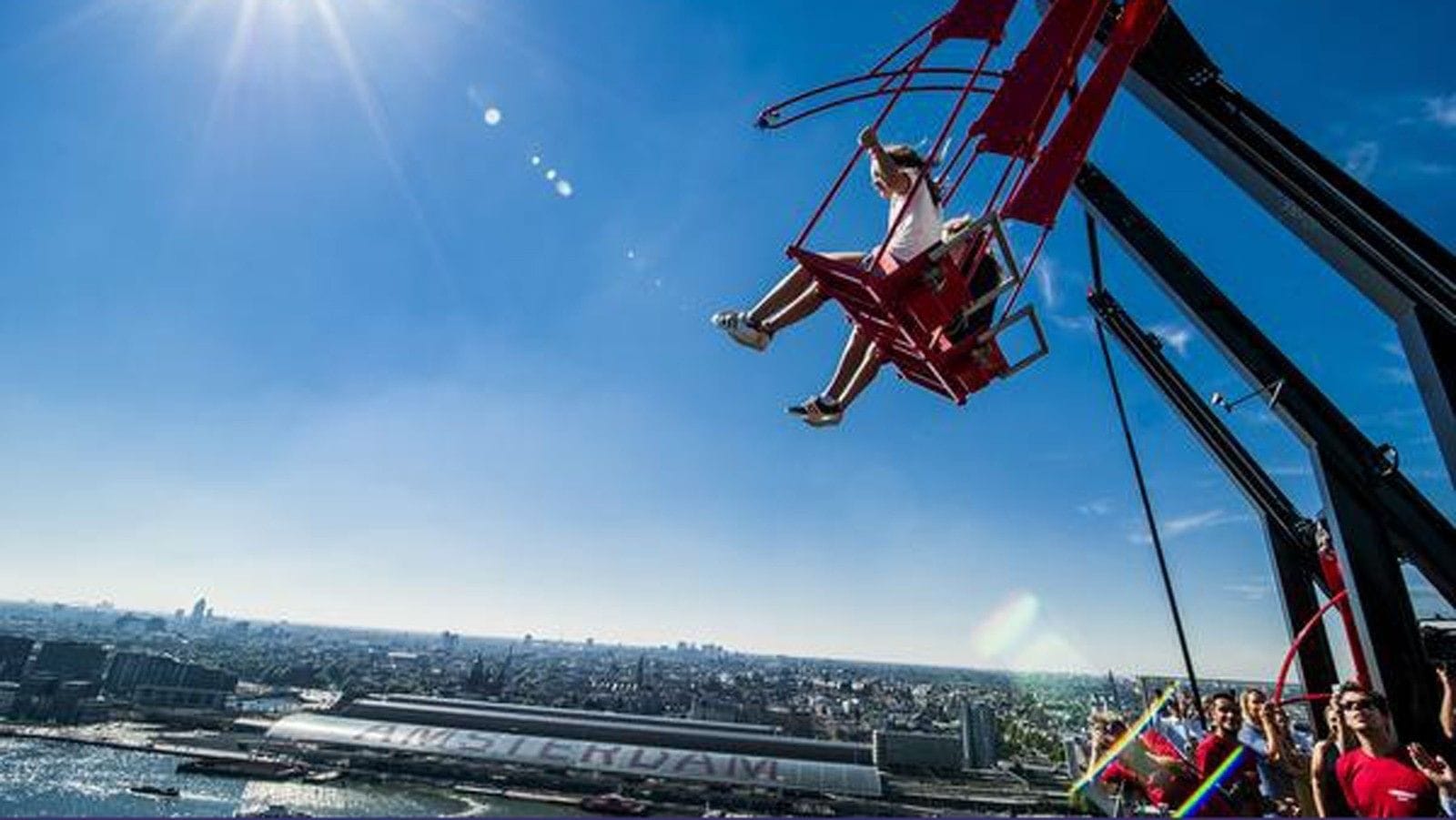 On August 25 the mayor of Amsterdam opened Europe’s highest swing called “OverTheEdge”. This one of a kind swing is placed on top of Amsterdam’s latest visitor attraction the A’DAM Tower. Visitor literally swing over the edge and get a magical experience floating in mid air 100 meters above the city.