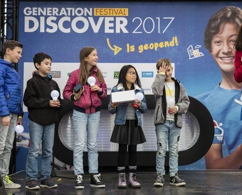 The first round of the Bright Ideas Challenge, developed by NorthernLight, came to a conclusion this week, with the award show of the winning ideas amongst a crowd of overexcited kids on the Generation Discover festival. The past 6 months kids submitted their bright ideas for global issues. Dylan Haegans, a popular Dutch vlogger, was one of the jury members and presented a prize to one of the winning teams.