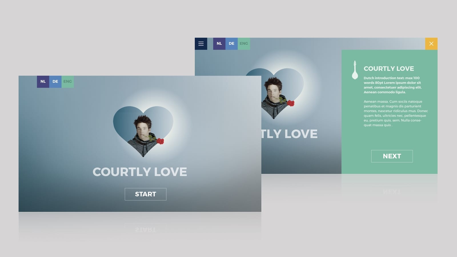 Seven characters, each with a contemporary look, invite you to experience the Middle Ages in a modern way. You can experience medieval court dancing through an interactive Kinect application, compose your own medieval music with digital means and practice your jousting skills in a 3D rendered environment.