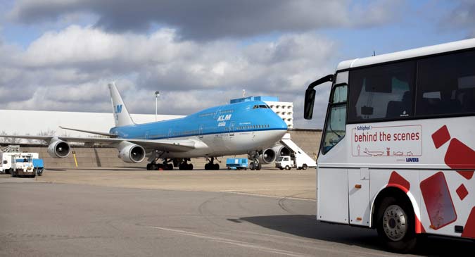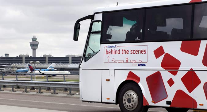 The Schiphol Behind the Scenes tour lets you see just how much happens in and around the airport.This multimedia bus tour is unique in the world. In the bus, the high tech multimedia system lets visitors enjoy beautiful images, an impressive soundscape, dedicated infographics and a personal video-guide. The bus even goes to secure airport areas, where one normally cannot come!