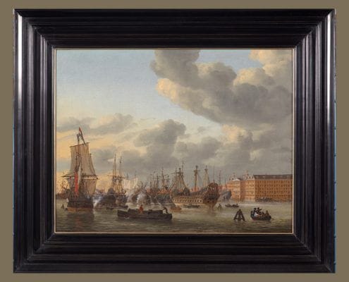 Starting point for ‘Dare to Discover’ is the masterpiece ‘View of the River IJ with ‘s Lands Zeemagazijn’ by Reinier Nooms in 1664. This painting shows a number of warships in front of the current building of the National Maritime Museum. The watchful observer recognizes in the VR journey Reinier Nooms, who belongs to the important maritime painters of the 17th century. He had the nickname Zeeman thanks to the many voyages he made.
